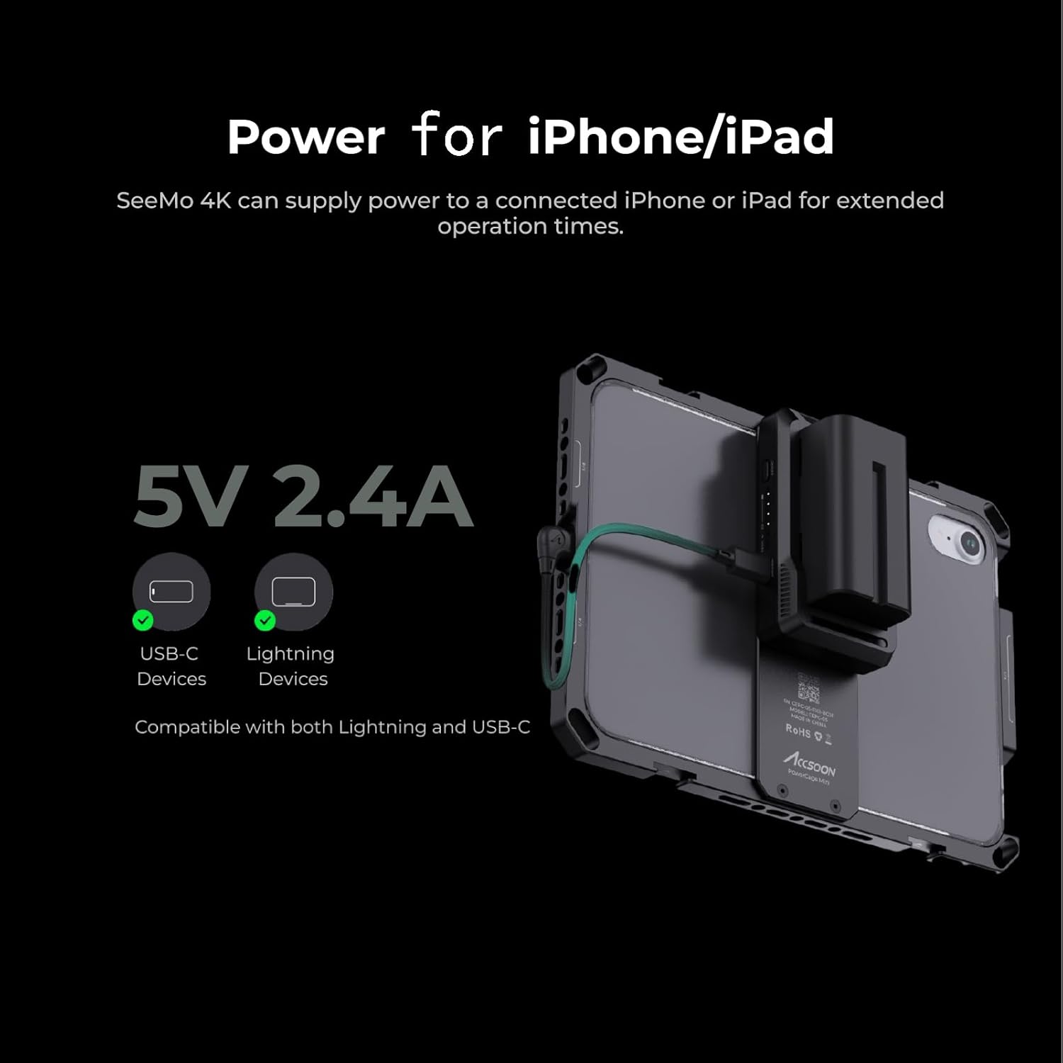Descubre Accsoon SeeMo 4K, un avance revolucionario en monitorización, grabación y streaming. Con resolución UHD 4K30, ofrece una claridad excepcional. Gracias a la función de copia de seguridad en tarjeta SD, Accsoon SeeMo 4K es tu solución integral. Manteniendo su eficiencia energética, transforma tu dispositivo iOS en un monitor de producción profesional con la app Accsoon SEE.