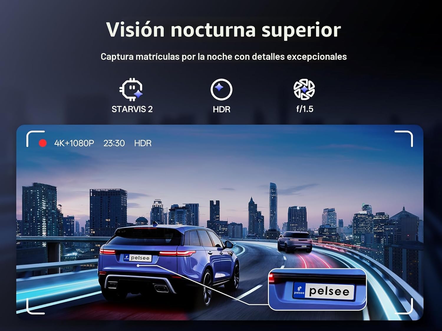 STARVIS 2 Night Vision Master: El sensor STARVIS 2 en este espejo de cámara de salpicadero ofrece un rendimiento superior con poca luz, equilibrando faros brillantes y sombras oscuras. Ya sea que necesites una cámara de espejo retrovisor para estacionar o para conducir en carretera, pelsee garantiza que los detalles críticos permanezcan visibles las 24 horas del día, los 7 días de la semana